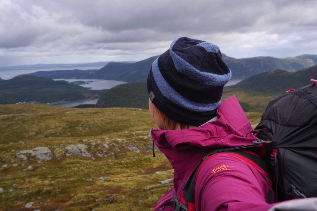 Planen kann man bekanntlich viel. Wie es einem letztendlich auf Tour ergeht, ist eben immer wieder ein großes Überraschungsei und absolut nicht vorhersehbar. Letztendlich ist es mir ziemlich gut gelungen, für meine Verhältnisse richtig leicht unterwegs zu sein – ich kam insgesamt und mit einer Woche Essen auf etwa 18 kg (ohne Wasser). Und das mit richtig stabiler, nordnorwegentauglicher Ausrüstung! Hätte ich jedoch vorher gewusst, dass ich kein einziges Mal zelten würde – ich hätte noch so viel mehr Gewicht einsparen und wirklich nur Hüttentourgepäck mitnehmen können. Klar, ärgerlich, aber im Nachhinein für mich ok. Warum nur Hütten? Meiner Meinung nach ist die Fjordruta nicht gerade voll von verlockenden Zeltplätzen, es war oft sumpfig, supernass, es gab langes Gras oder war waldig. Ich war es bisher gewohnt, auf etwa 700-900 oder mehr HM unterwegs zu sein, wo in Skandinavien wirklich baumloses Fjell oder bestenfalls lichter Birkenwald vorherrscht – was ich zum Zelten persönlich zum Zelten super finde. Die Fjordruta führt vor allem in der zweiten Hälfte ebenfalls durch solches Gelände, ist auf dieser Höhe jedoch sehr ausgesetzt, und ich wollte ungern auf einem Bergkamm zelten, auch wenn ich den Untergrund dort sehr einladend und vertraut fand, und mich da auch zum ersten mal bei Gedanken erwischte wie „Mensch, hier zelten…“. Zudem sah ich dank des vielen Sumpfs und Regens am Ende jedes Wandertages aus wie eine Pottsau und hatte großes Verlangen danach, meine Sachen zu trocknen und mich an den warmen Ofen zu muckeln. Klar wäre Zelten schon problemlos möglich gewesen, hätte auf der Route für mich aber eher Zwang als Gemütlichkeit und Belohnungseffekt bedeutet – und das ist auch total okay für mich. Wer mir auf Instagram folgt weiß auch, dass die Tour absolut nicht so easy ist wie die Hüttenabstände vermuten lassen. Nein, da sollte man unbedingt Norwegen-Logik anwenden und daraus schließen, dass die kurzen Abstände genau so auch SINN haben 😉 Fast jede Hütte mitzunehmen war also mein Versuch, auf der Fjordruta Urlaub zu machen, und so konnte ich mich von den durchaus sehr fordernden, wenn auch kurzen, Wandertagen ausreichend erholen.