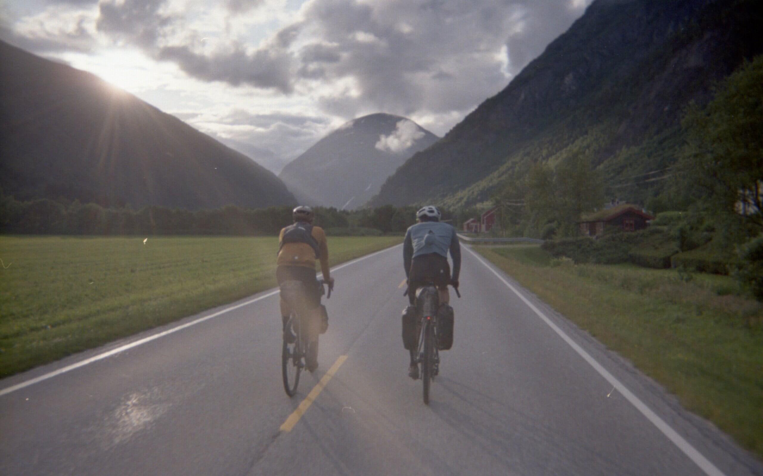 Endlich kommt sie dann, die letzte verrückte Abfahrt des Tages hinab nach Vågåmo. Es ist fast 23 Uhr, als wir mit 70 km/h über losem Schotter durch den Wald ins Tal hinunter rasen. Es fühlt sich an wie ein Computerspiel. Mein Kopf ist komplett leer, völlig durch, als wir es tatsächlich rechtzeitig zu unserem Gastgeber schaffen, der uns etwas ungläubig empfängt.