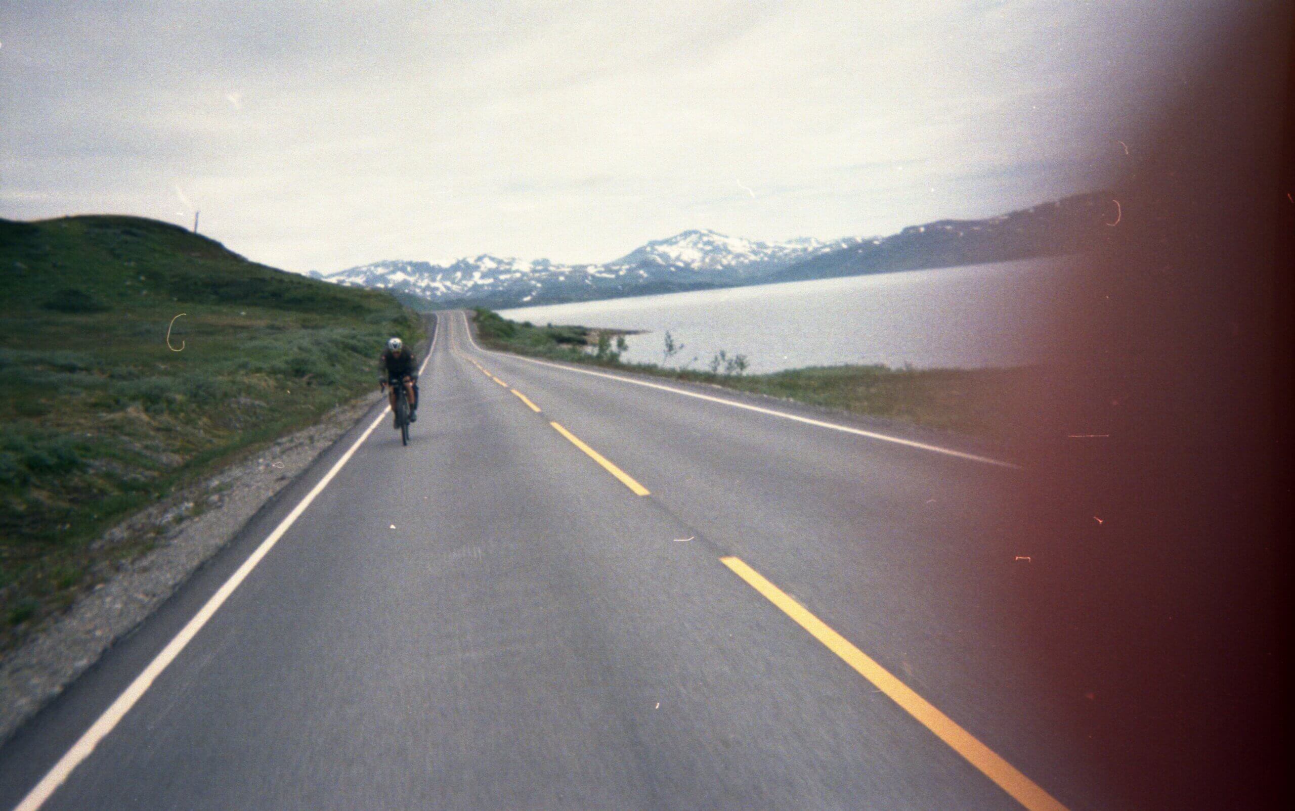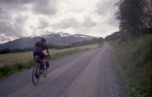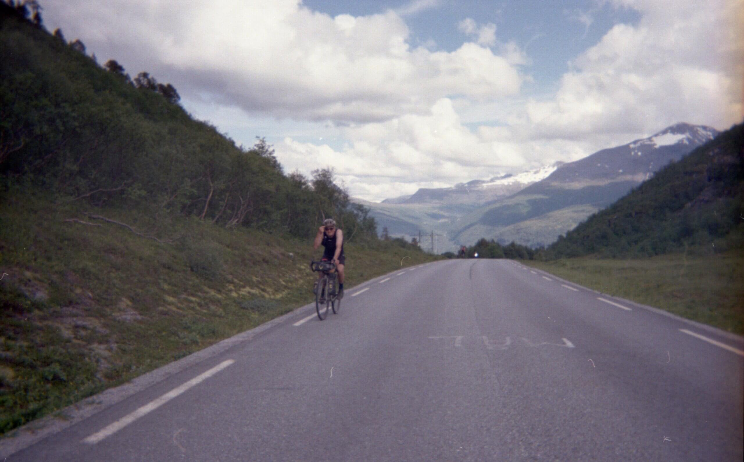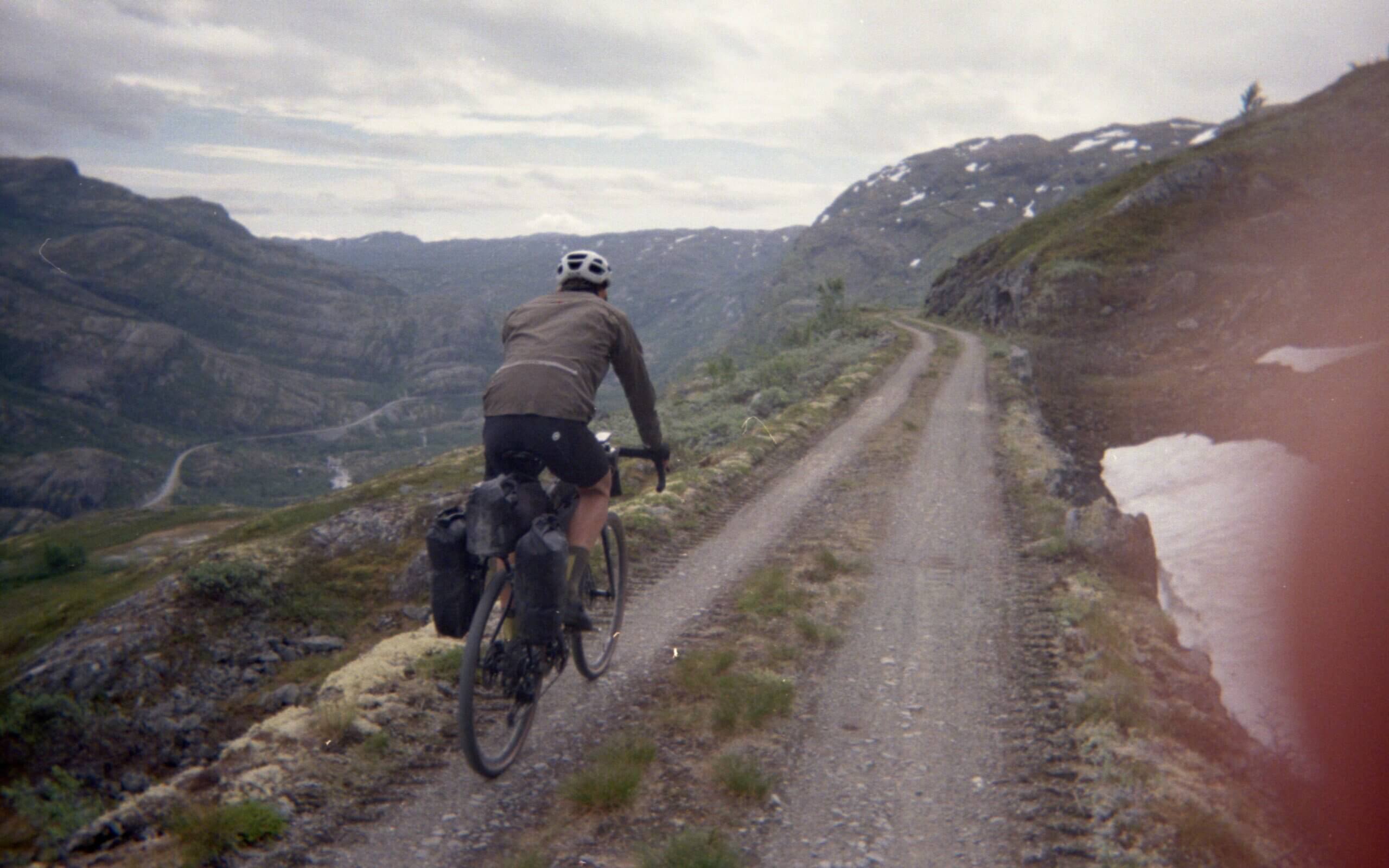 Flashbacks von anderen verrückten Touren kommen hoch. Es ist das dritte Mal für mich auf dieser Straße durchs norwegische Hinterland: Das erste Mal als ich durch ganz Norwegen von Lindesnes bis zum Nordkap zu Fuß gegangen, das zweite Mal im Winter auf Skiern beim Versuch ebenfalls Norwegen der Länge nach zu durchqueren – und jetzt zum dritten Mal mit dem Gravel Bike. Verrückt.