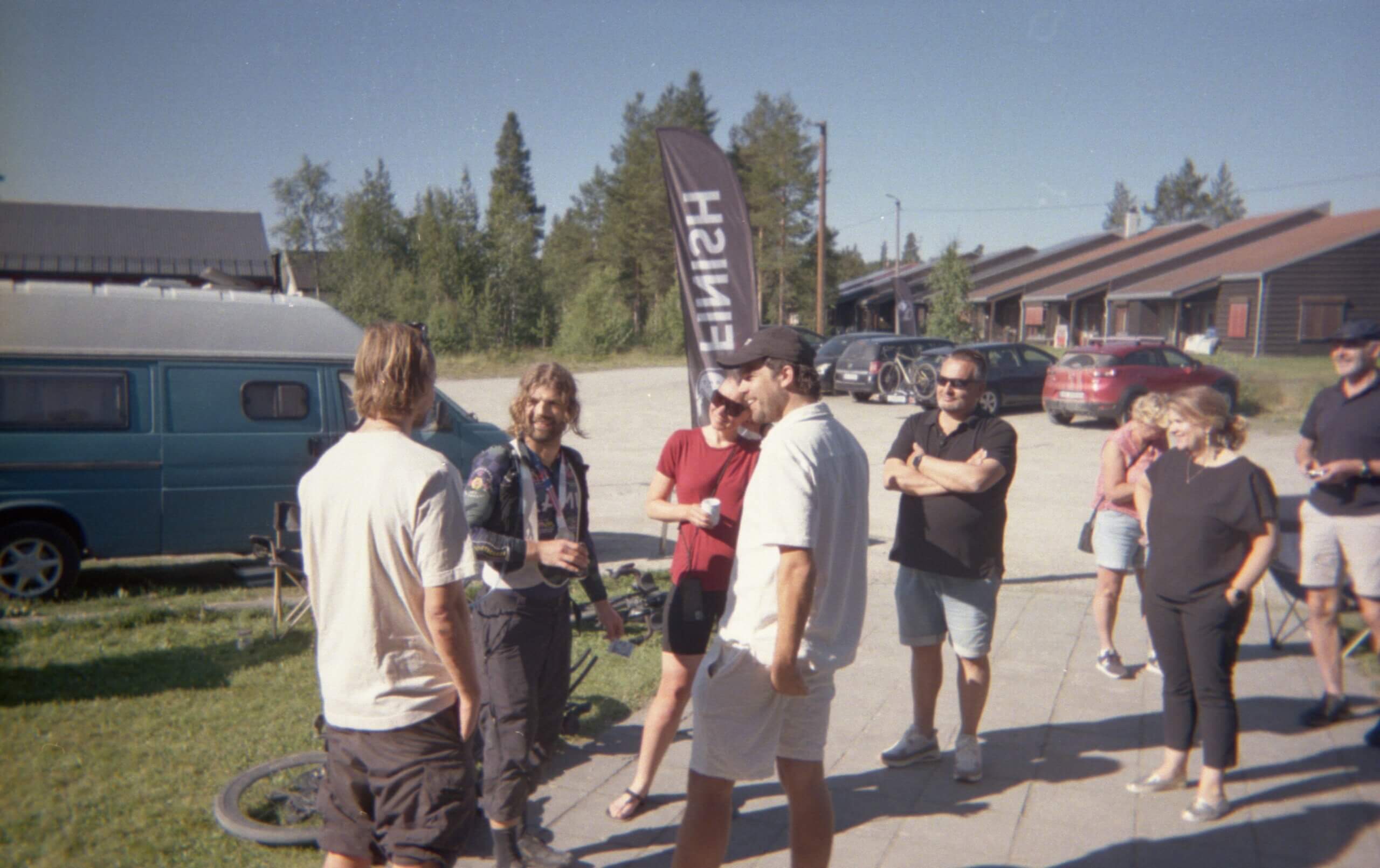 Am Nachmittag beginnt dann auch das Briefing durch den Organisator Justinas und alle können ihre Startunterlagen abholen. Es werden einige Einweg-Kameras an die Teilnehmenden verteilt, wer Bock hat, greift zu und gibt sie nach dem Event zurück. Ich nehme eine Kamera, die Vorfreude steigt und bei der anschließenden Pasta-Party kommt richtiges Community Gefühl auf. Das macht echt Bock und ist vermutlich der größte Unterschied zum anderen Ultra-Event in Norwegen, dem Mother North in Lillehammer, an dem ich im letzten Jahr teilgenommen habe. Hier ist alles familiär und eine große Community, alle hocken beieinander und quatschen. Das war beim Mother North ganz anders, da hatte ich das Gefühl, dass alle alleine ihr Ding machen, es gab kein Basecamp und nach dem Briefing haben sich alle wieder bis zum Start in alle Himmelsrichtungen zerstreut, hier ist es genau anders herum, immer mehr Leute treffen ein, alle wuseln umher.