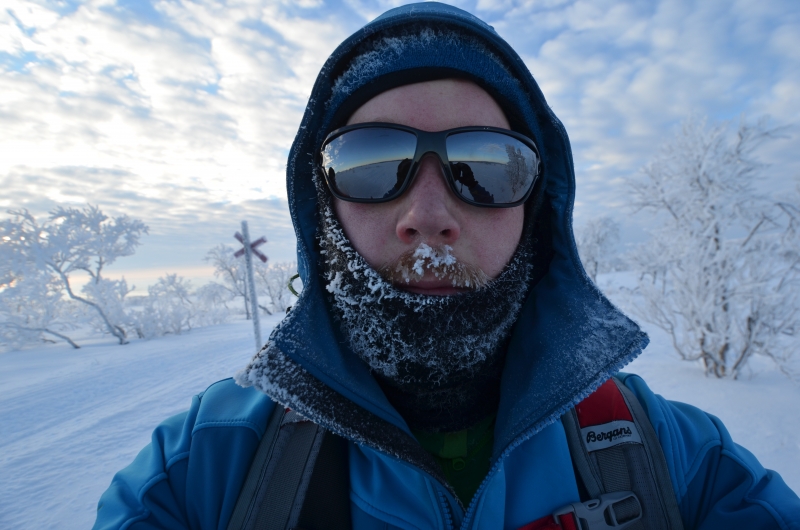 Wir hatten Minus 25 Grad Celsius und wir hatten Schneeregen. Wir haben mal für 300 m eine Stunde gebraucht und haben aber auch an einem Tag 55 km abgerissen. Nach den Minus 25 Grad wäre ich am liebesten direkt in den Bus nach Hause gestiegen, alles tat mir weh. Und auch der Weg nach Gaundalen hatte es in sich. Steinar Gaundalen konnte unsere wütendens Gebrüll schon ein Stunde vorher durch das Tal gellen hören…