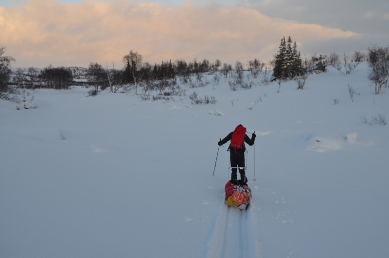 Wir hatten Minus 25 Grad Celsius und wir hatten Schneeregen. Wir haben mal für 300 m eine Stunde gebraucht und haben aber auch an einem Tag 55 km abgerissen. Nach den Minus 25 Grad wäre ich am liebesten direkt in den Bus nach Hause gestiegen, alles tat mir weh. Und auch der Weg nach Gaundalen hatte es in sich. Steinar Gaundalen konnte unsere wütendens Gebrüll schon ein Stunde vorher durch das Tal gellen hören…